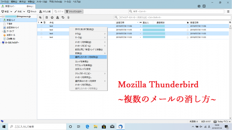 Mozilla Thunderbird(モジラ サンダーバード)で、メールを1通ずつではなく、一括して削除や複数メールを選択して削除したいと思ったことはありませんか。今回は複数削除する方法をご紹介します♪ 一括してメール … 続きを読む Mozilla Thunderbird~複数のメールの消し方~